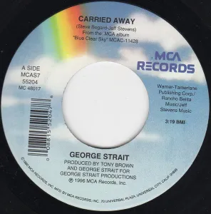 “Carried Away” is a romantic mid-tempo country ballad recorded by George Strait for his fifteenth studio album, Blue Clear Sky. The album was released on April 23, 1996, by MCA Nashville Records. The song was written by Steve Bogard and Jeff Stevens, with production handled by Tony Brown and George Strait. It runs 3 minutes and 29 seconds and features a smooth, swaying groove with prominent steel guitar and fiddle accents, perfectly suiting Strait’s effortless vocal style.