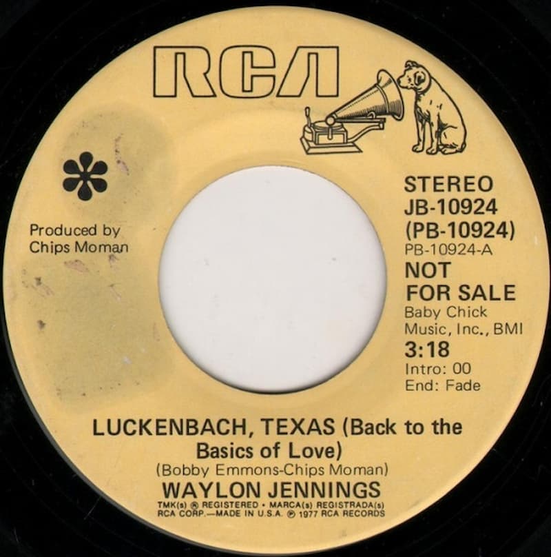 On April 16, 1977 “Luckenbach, Texas (Back to the Basics of Love)” made Billboard history when it became the first single ever to debut in the upper half of the 100-position country chart. A handful of records had debuted in the 50s before, but “Luckenbach, Texas” came in at #48 in its first week. It went on to claim the #1 slot just five weeks later on May 21st, spending six weeks at the summit, one of only three country singles to achieve this feat during the 1970s (the others are Freddie Hart’s “My Hang Up Is You” in 1972 and C. W. McCall’s “Convoy” in late 1975 and early ‘76).