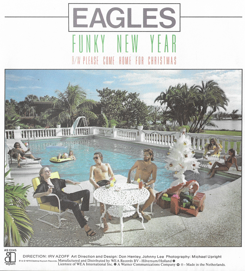 “Funky New Year” is a track by the American rock band Eagles, originally released as the B-side to the single “Please Come Home for Christmas” on Asylum Records (catalog AS-11008) in November 1978. The song was recorded in 1978 during sessions that also produced the holiday single, with production handled by Bill Szymczyk. Written by Don Henley, Glenn Frey, and Jim Keltner (the renowned session drummer who contributed to the track), it features Henley on lead vocals with band harmonies, and includes a distinctive funky groove driven by Keltner’s percussion, Joe Walsh’s guitar work, and a prominent clavinet riff. The track runs approximately 3:58 and represents one of the Eagles’ few non-album singles from the late 1970s period, bridging their Hotel California (1976) and The Long Run (1979) eras. It was later included on various compilations, including The Very Best of the Eagles (2003 international edition), Selected Works 1972-1999 (2000 box set), and Holiday Inn (a 2015 Christmas compilation featuring the A-side).