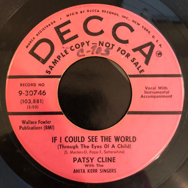 “If I Could See the World (Through the Eyes of a Child)” (commonly shortened to “If I Could See the World” or “Through the Eyes of a Child”) is a song recorded by American country singer Patsy Cline. Written by Sammy Masters, Richard Pope (also credited as Dick Pope), and Tex Satterwhite, it was released as a single in late 1958 by Decca Records (Decca 9-30762), with “Just Out of Reach (Of My Two Open Arms)” as the B-side. Produced by Owen Bradley at Bradley Film and Recording Studio in Nashville, the track was recorded on December 13, 1957, during one of Cline’s sessions under her Four Star Records contract, which funneled material through Decca. The song runs approximately 2:50 to 2:53 in duration across releases.